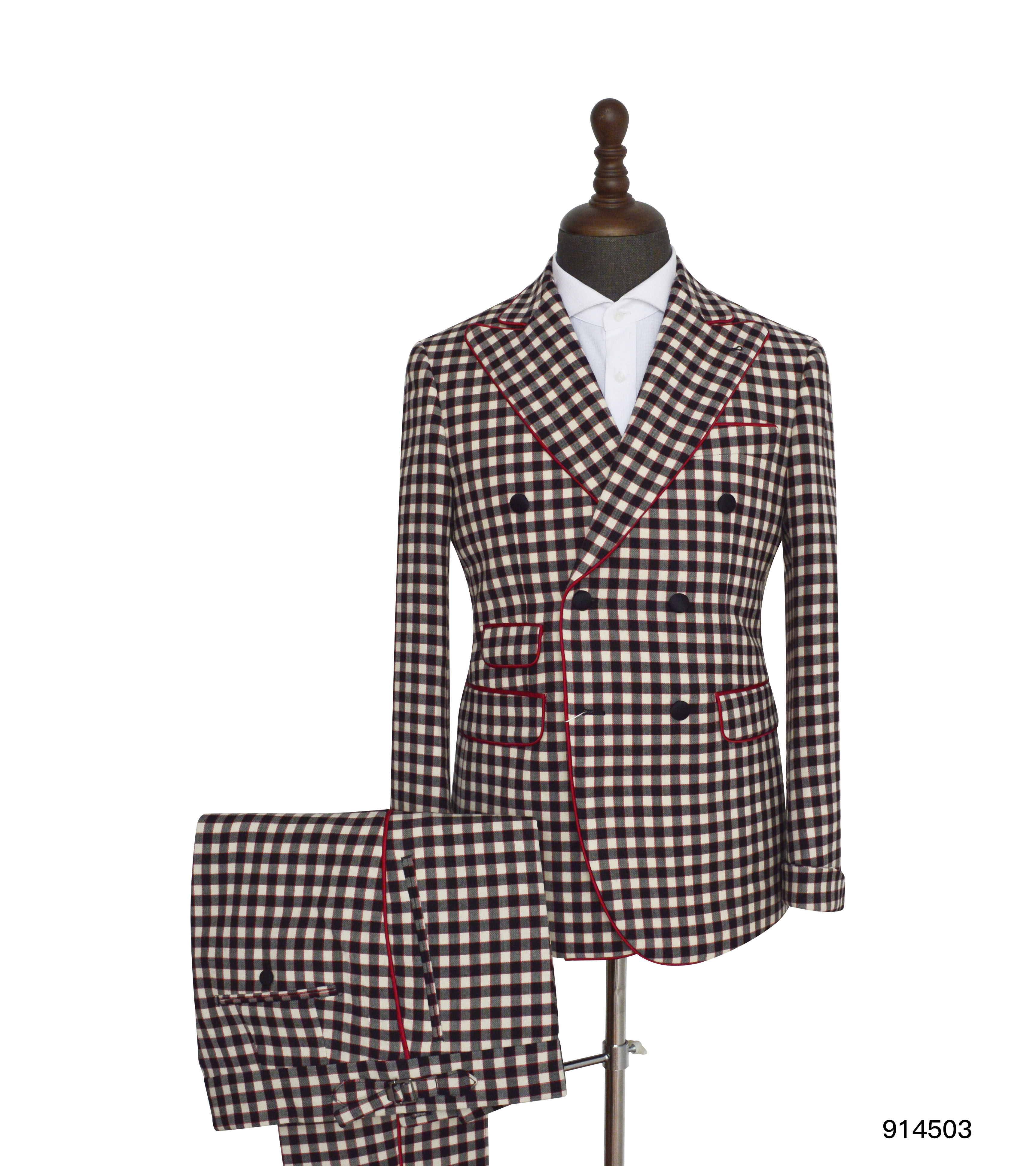 슬림핏 2버튼 레드 체크 남성 재킷과 바지 2피스 수트