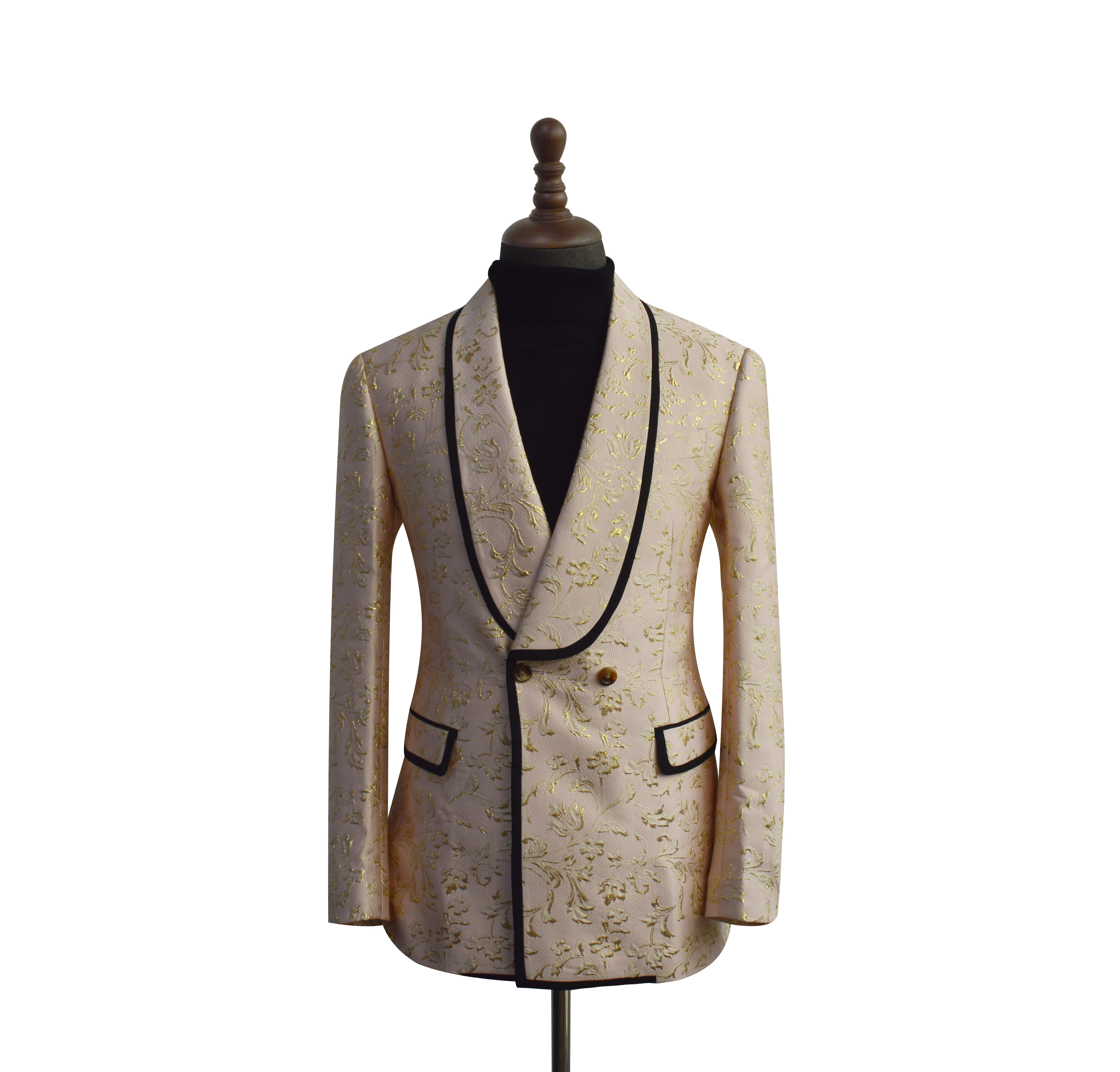 신상 맞춤 슬림핏 남성 베이지 자카드 웨딩 턱시도 수트