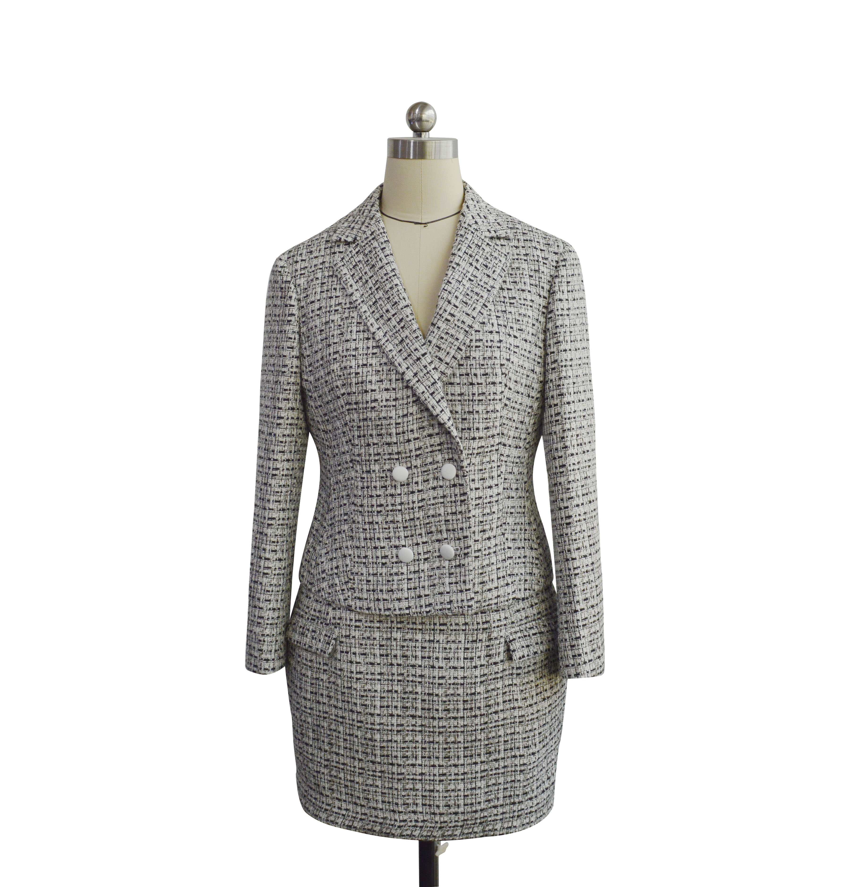 여성용 화이트 트위드 비즈니스 정장 자켓 & 스커트 세트