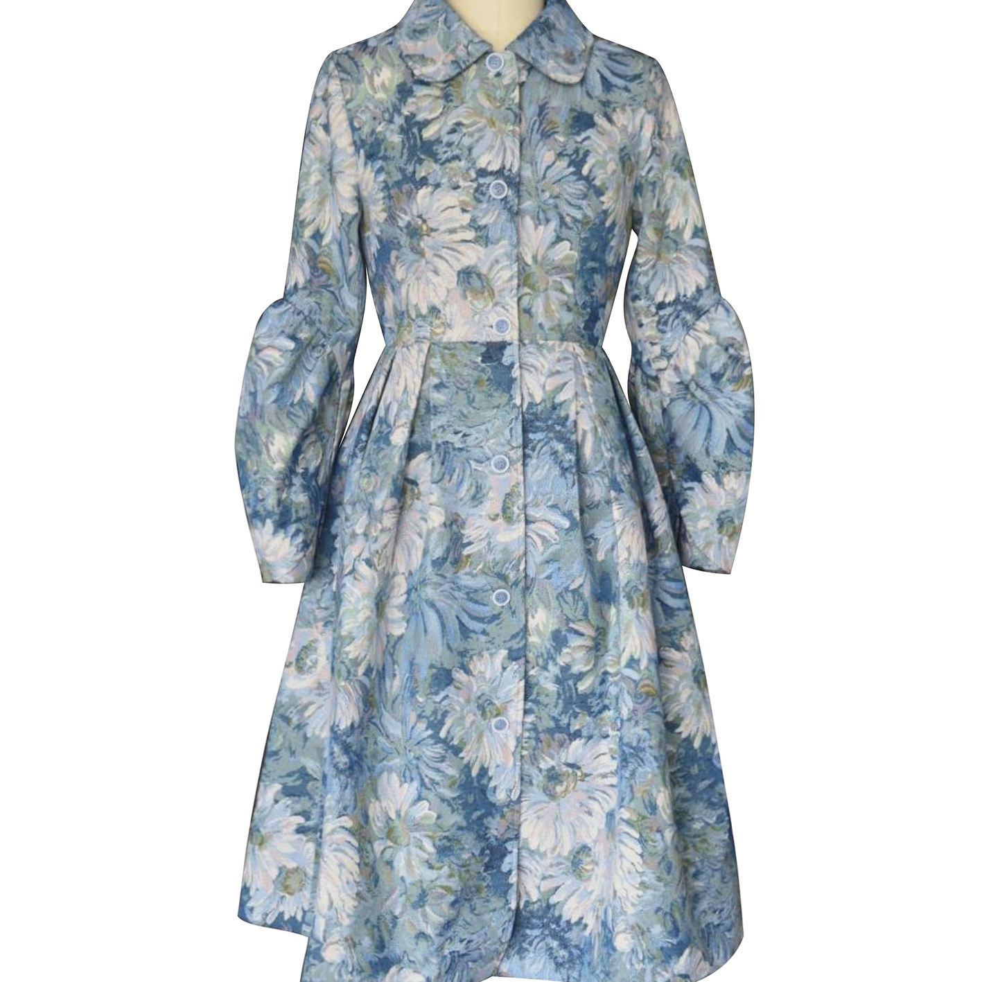 블루 자카드 나이 감소 레트로 드레스 고급 도매 맞춤 여성 검증된 공급업체 의류